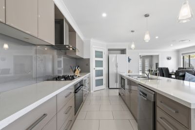 On the cusp of the Hunter Valley Vineyards, this as-new McDonald Jones home boasts resort style living for families or an idyllic retreat to retire to. Complete with stunning in-ground swimming pool, choice of multiple living spaces, huge outdoor entertaining area, attached double garage, additional 7.5mx10.3m colour bond garage with rear lane access and large backyard with vehicle access.