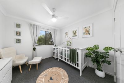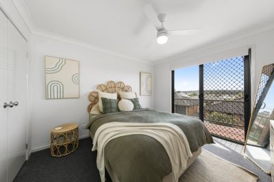- Three bedrooms with built-in wardrobes, ceiling fans and plush carpet to floors, main bedroom with glass slider to balcony