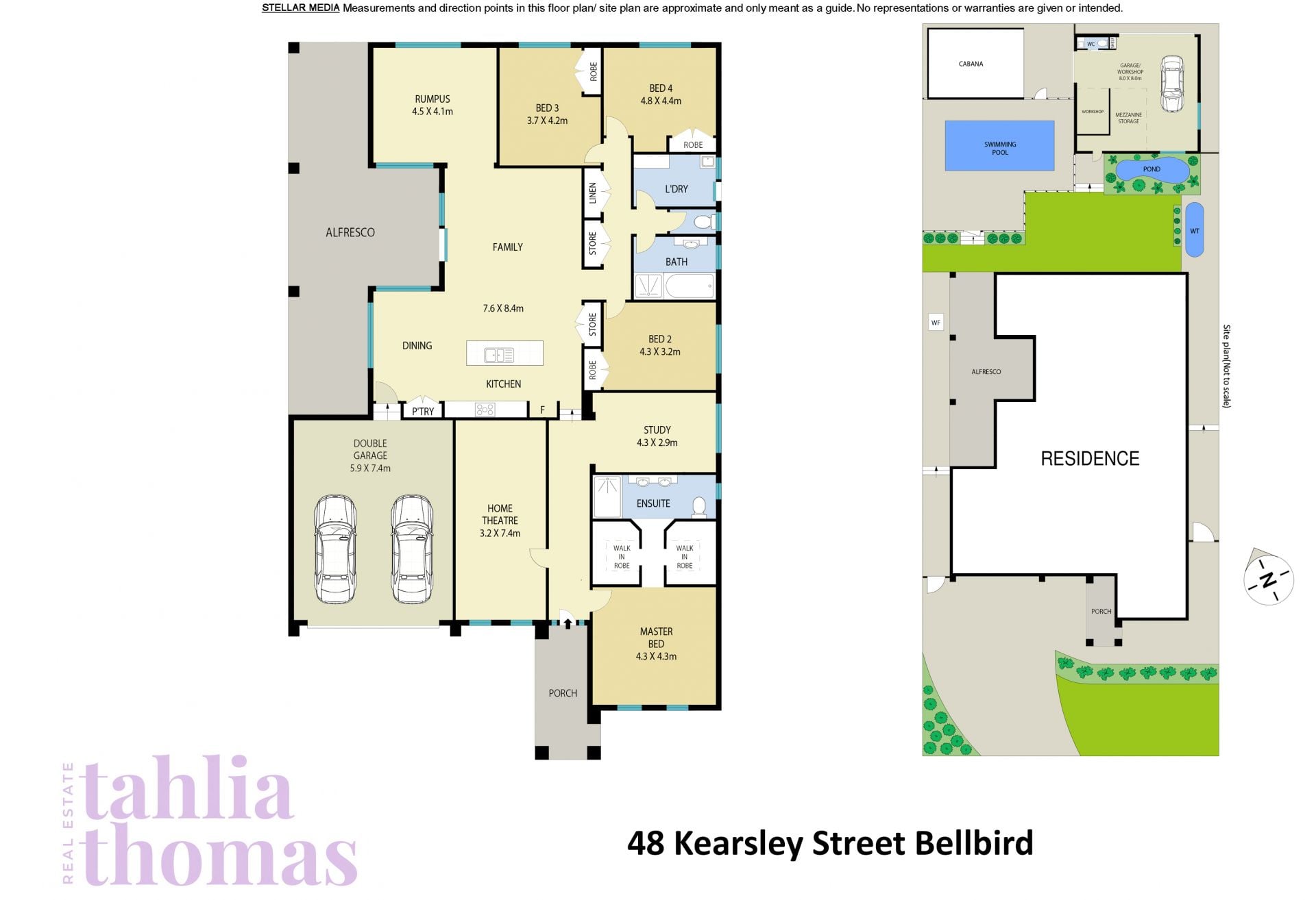 - Four bedrooms, three fitted with built-in robes, all with fans and plush carpet to floors, master with huge his and hers walk-in robes and ensuite with his and hers basins and large shower, huge open plan light filled study or convert to fifth bedroom, option for sixth bedroom with theatre room conversion for large families