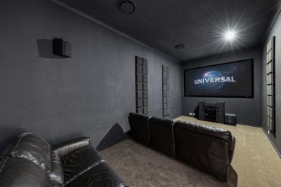 - Huge main living area is light filled with hybrid floors combining the kitchen and dining and flows seamlessly to the outdoor entertaining area via stacker doors, second lounge room the ultimate theatre room with blacked out walls, ceilings and blinds, room for multiple rows of theatre seats and 3.3m high ceilings - could also be converted to the ultimate golf simulator fit out or lends itself to convert to sixth bedroom for large families. Third living space located overlooking the pool and backyard and connects to main lounge kitchen and dining