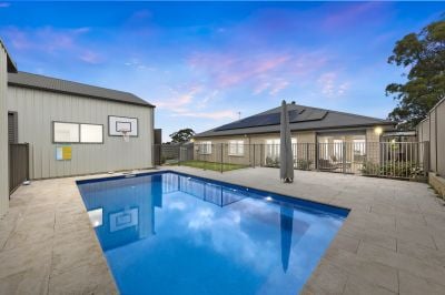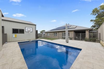 On the cusp of the Hunter Valley Vineyards, this as-new resort style home boasts kuxury living for families or an idyllic retreat to retire to. Complete with stunning in-ground swimming pool, choice of multiple living spaces, huge outdoor entertaining area, attached double garage, additional 8x8m colour bond garage complete with rear lane access, toilet, mezzanine and workshop and large grassed backyard
