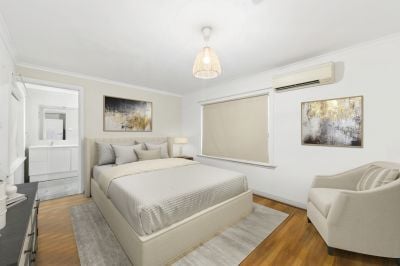 - Three large bedrooms with built-in robes, original timber windows, main bedroom features ensuite and reverse-cycle air-conditioning