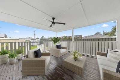 - Timber undercover entertaining patio connects the grassed rear yard perfect for pets and children