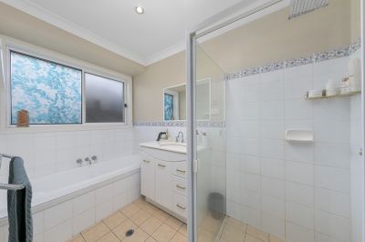- Neutral main bathroom features separate bath and shower, large shower and stainless fixtures and fittings
