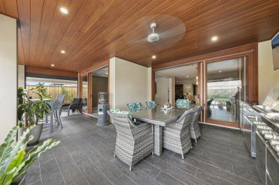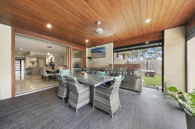 - Oversized alfresco entertaining area with stunning coffered cedar panelled ceiling complete with downlights and ceiling fan opens seamlessly from the entertainers lounge and dining with built-in BBQ, this area is private and overlooks the sparkling in-ground swimming pool and is private with high timber fencing and stunning established greenery