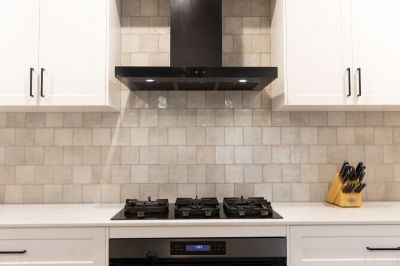 - Stunning huge brand new kitchen with gorgeous stone benchtops, gorgeous on trend feature tile splashback, white shaker cabinetry with matte black fittings, 9mm chef's electric oven with five burner gas cooktop, dishwasher, built-in wine fridge, double fridge space, an abundance of cupboard and bench space, LED downlights and breakfast bar
