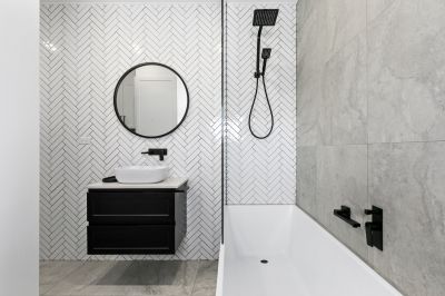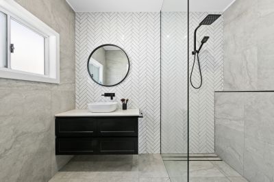- Fully renovated and spacious bathroom includes neutral tones, stunning floor to ceiling wall tiles, floating vanity with matte black tapware, bath and shower combined with rain shower and shower wand