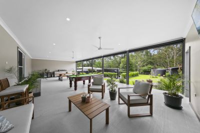 - Impressive layout includes two living areas, open plan lounge/kitchen/dining space seamless flow to huge outdoor entertaining and superb outlook to the parklike grounds, trees, no neighbours behind and expansive backyard, second living is located off the children's wing/guest wing of the home, perfect kid's play room, teenage retreat or formal lounge