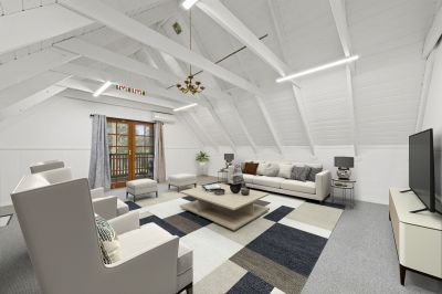 - Spacious living room features grande raked ceilings with exposed timber beams, a wood combustion fireplace, reverse-cycle air-conditioning and flows seamlessly to the kitchen and dining, featuring gorgeous French doors that lead to wrap around verandas, stunning and unique stained glass windows all soaking in the surrounding greenery
