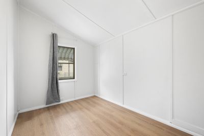- Cosy but spacious living area with floating floors and air-conditioning looks out onto the front porch and greenery