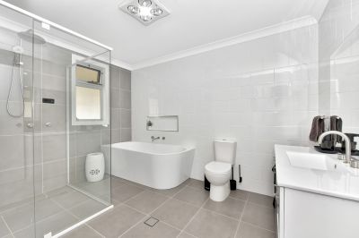 - Fully renovated bathroom includes ceramic vanity, deep soaking tub, huge semi-frameless shower with rain shower head and retractable stainless tapware, shower and bath alcoves, floor to ceiling wall tiles and gorgeous neutral tones