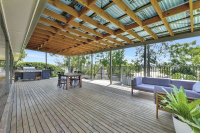 - Beautiful expansive timber deck warps around the whole house and connects directly to both living spaces via stunning French doors, elevated views and soaks in the backyard greenery and trees, perfect for entertaining